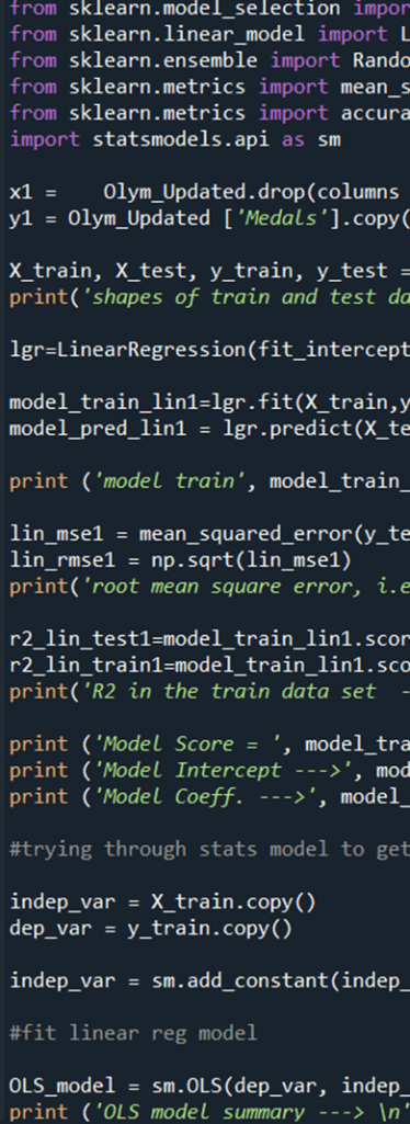 - Exogeneous variables used: Country-wise Population, Gross National Income (GNI), GNI per capita, Gross Domestic Product (GDP) growth %, Poverty %, Female participation in workforce %, Life expectancy, Government expenditure as % of GDP (note that this excludes the lag indicator of Olympic medals won in the previous Games, i.e., the methodology excludes the no. of medals won in Tokyo 2020).