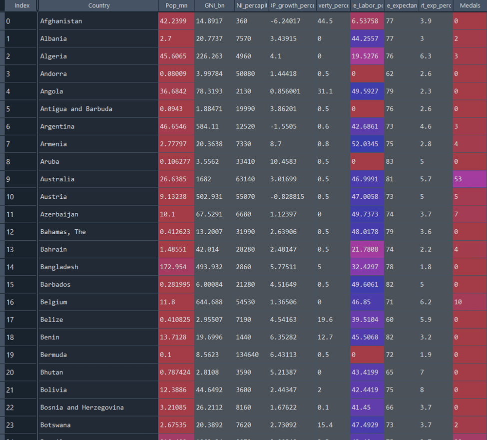 - Obtain key country-specific macro-economic indicators and Olympic Games information from standard sources (largely from the World Bank and Olympic Games websites).